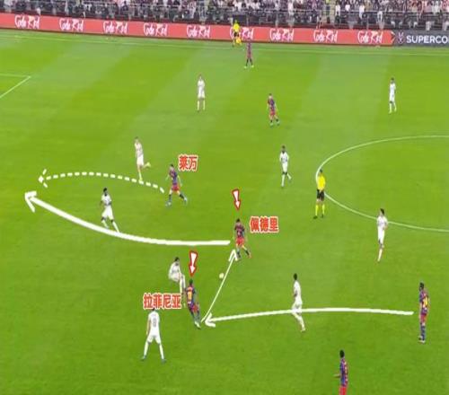 而且莱万能冲,对手就要跟,拉菲尼亚又能二次反插,保证了巴萨进禁区的人数,也保证了扑球门时的效率。这一点是费兰做不到的,也是费兰比莱万更加依赖拉菲尼亚去冲击的原因。